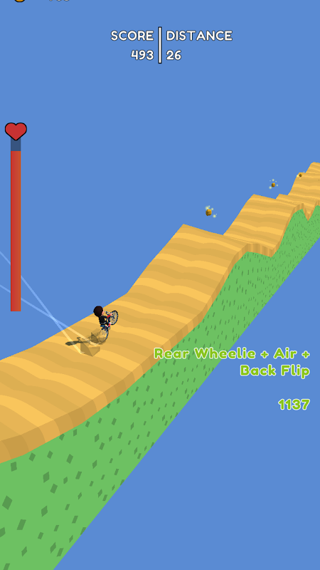 Try to get as far as possible, perform stunts to score points, customize your character and bike, level up and improve your skills.
