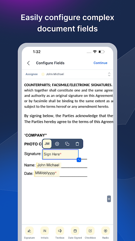 Aplikasi seluler BoldSign melengkapi aplikasi web kami, memungkinkan Anda mengunggah PDF dengan lancar, menetapkan bidang tanda tangan/pengumpulan data, dan mengirim dokumen untuk ditandatangani. Editor lapangan menawarkan pengalaman terbaik di kelasnya yang memungkinkan Anda mengonfigurasi dokumen paling rumit sekalipun di perangkat seluler.
