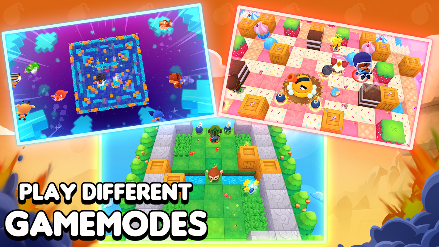 Pertarungan Bomber yang kacau dan serba cepat yang belum pernah Anda lihat sebelumnya! Bermainlah dengan teman-teman dan bentuklah tim bersama.