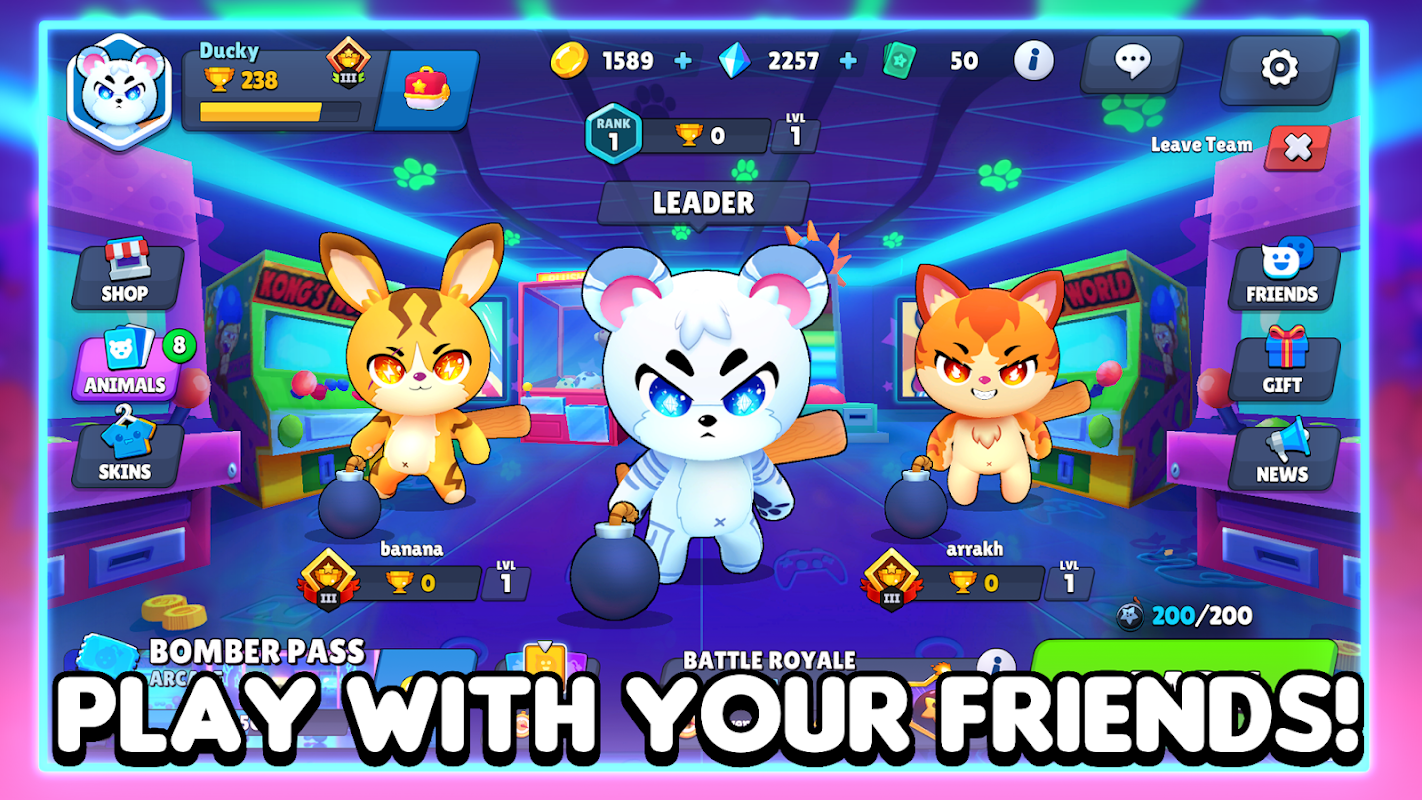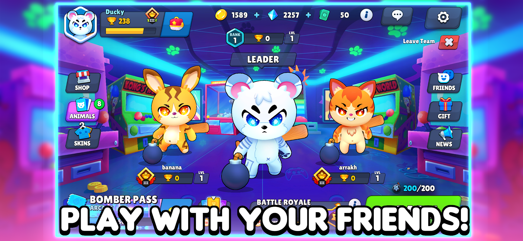 Buka dan tingkatkan hewan-hewan lucu dengan kemampuan yang kuat untuk bertarung dalam berbagai mode permainan! Kumpulkan skin yang unik, jalin pertemanan, bentuklah tim, dan biarkan pertempuran dimulai!