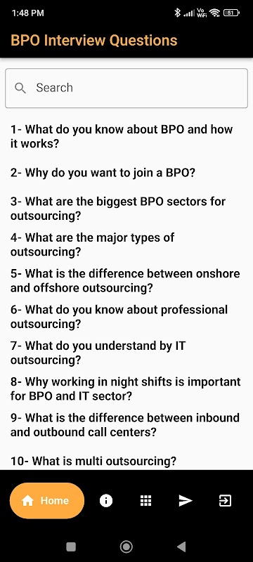 Pertanyaan Wawancara BPO: Bagi mereka yang secara khusus tertarik dengan BPO, aplikasi kami menyertakan bagian khusus dengan lebih dari 100+ pertanyaan yang berfokus pada konsep BPO. Perdalam pengetahuan Anda dan tingkatkan kepercayaan diri Anda dalam skenario wawancara BPO.