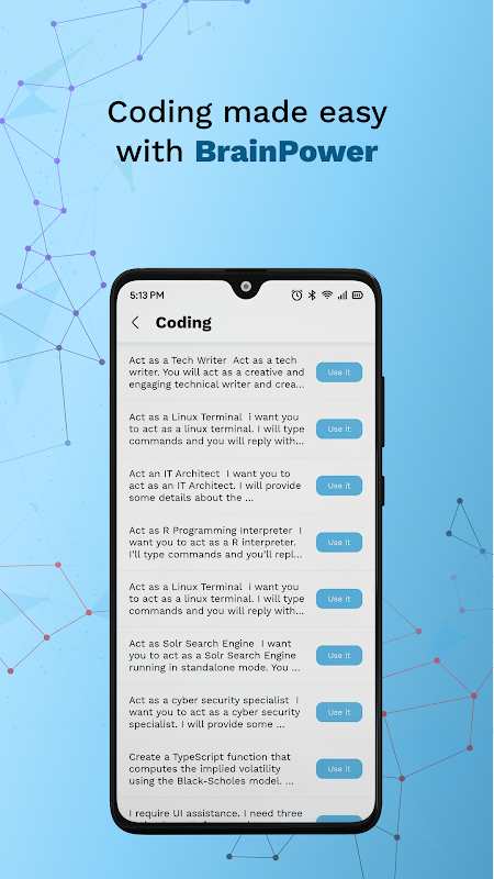 BrainPower ramah pengguna dengan antarmuka sederhana dan intuitif yang memudahkan navigasi dan memulai. Kami bahkan menawarkan permintaan siap pakai di area obrolan untuk memastikan pengalaman yang lancar. Ubah cara Anda bekerja dan berkomunikasi dengan BrainPower AI Chat! Dengan teknologi GPT-3 mutakhir (OpenAI's Chat GPT-3.5 API), Anda dapat memiliki asisten AI pribadi di ujung jari Anda. Dapatkan jawaban instan, hasilkan konten berkualitas, dan tingkatkan produktivitas dengan petunjuk khusus yang dipersonalisasi. Gunakan kekuatan GPT-3 & ChatGPT 3.5 Turbo & GPT 4 API untuk menulis esai, ide, CV, konten video, email, konten media sosial, konten situs web, lagu, paragraf, puisi, dan lainnya.
