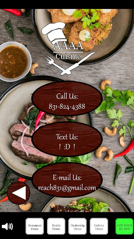 This App acts as a demonstration of features and ideas that could be implemented into an App for your brand/business. The 4 examples included (Restaurant menu focused App, Realty group app, Dealership app, and Gallery focused App) are all examples of how an App may be used to represent a brand from of those types. All the depicted businesses are fictitious, yet the app does still demonstrate how at the press of a button a user may be able to call, write you, browse your offering or be sent to Google Maps for even live directions if they desire.