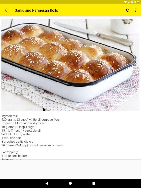 This is your flexible amount of Bread Recipes which you can use every day, to make different types of breads. Use the app Bread Recipes and prepare breads like flatbread bread, italian bread, garlic bread, chocolate bread, garlic bread and some more. Fortify your taste buds and figure out how to set up a wide range of bread in a simple, well ordered way! Prepare the bread in amend broiler and different utensils, additionally known the serving size.