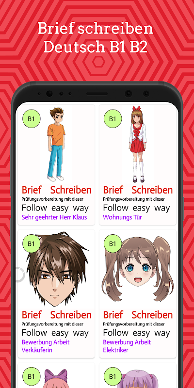 Diese App wird Ihnen bei der B2-Prüfung sehr helfen. Deutsch ist eine der logischsten Sprachen, diese App gibt Ihnen eine gute Vorstellung davon, wie man Briefe schreibt. Wenn Sie Singkat schreiben Deutsch a1, Singkat schreiben Deutsch a2, Singkat schreiben Deutsch b2 gelernt haben, wird Ihnen diese Anwendung sehr helfen.