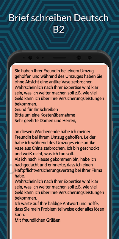 Hier finden Sie jede Menge Briefsammlungen für Ihre Prüfungsvorbereitung mit unterschiedlichen Themen. Anhand dieer Beispiele lernen Sie, wie Sie Briefe auf Deutsch richtig schreiben. Hier finden Sie den Mustertest der B1-Prüfung mit einer Lösung zur Vorbereitung auf die Prüfung. Benutzer, die die deutsche Sprache mit Hilfe der Android-App lernen möchten, dann ist die die beste Opsi für sie, um ihre deutsche Sprache zu verbessern.