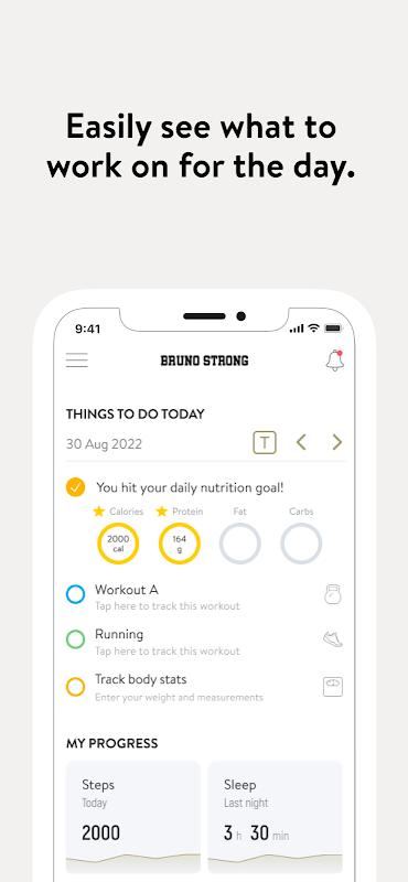 Dengan Aplikasi Bruno Strong, Anda akan memiliki akses ke program latihan yang dirancang khusus untuk membantu Anda mencapai tujuan kebugaran dan kesehatan Anda! Anda dapat mengikuti & melacak latihan Anda, nutrisi Anda, kebiasaan gaya hidup Anda, pengukuran dan hasil–semuanya dengan bantuan pelatih Anda.