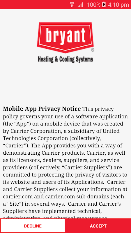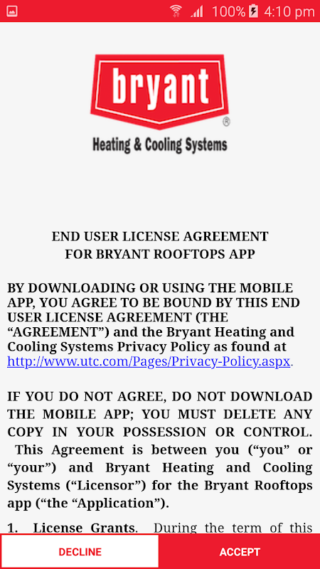Bryant® Atap aplikasi memungkinkan pengguna untuk melakukan seleksi pada-spot unit atap HVAC.