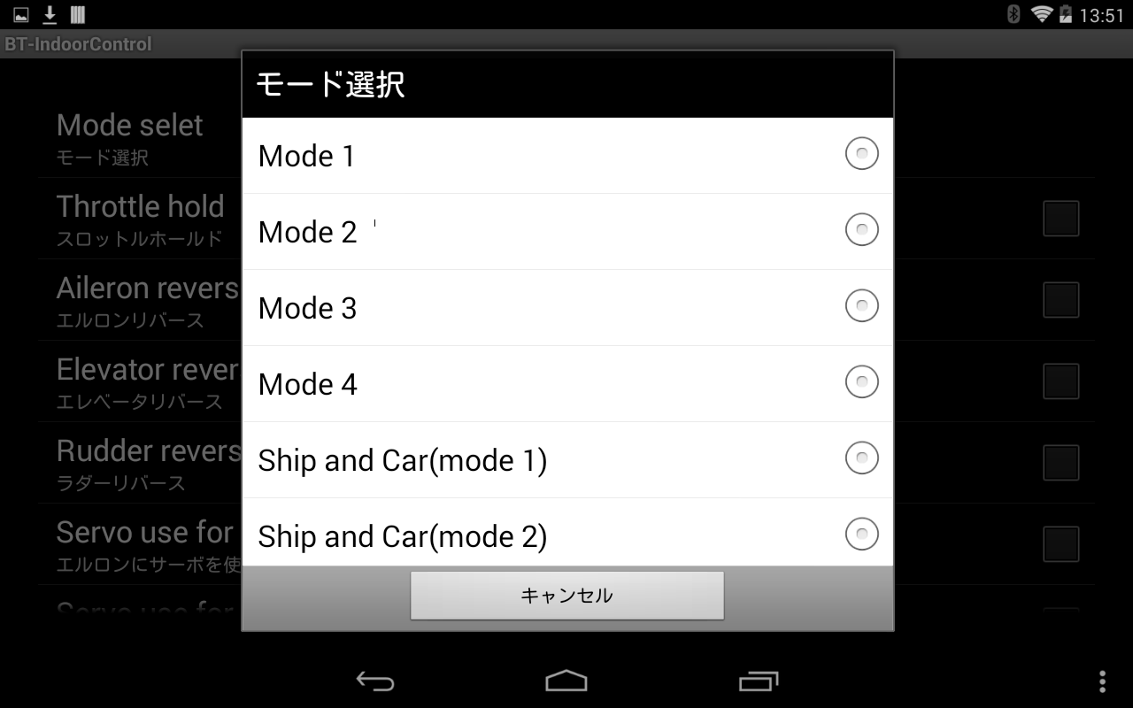 BT-IndoorControlアプリを使ってBluetooth受信機を搭載したインドアプレーン、ボート、車等をリモートコントロールできます。