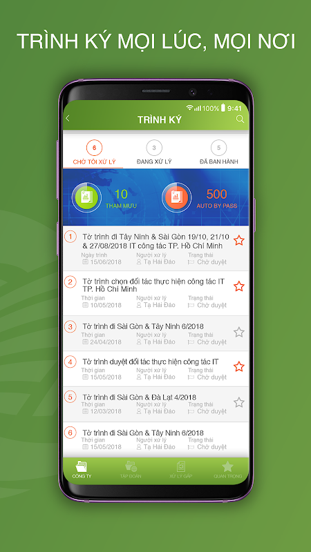 - Trình ký: tương các hồ sơ trong doanh nghiệp. Chủ trương được phê duyệt một cách nhanh chóng, tài liệu được lưu trữ an toàn,phân quyền quản lý chặc chẽ và tra cứu dễ dàng. Trình ký online giúp chuẩn hóa và giám sát được các quy trình. Tất cả các hoạt động phải tuân theo các văn bản lập quy của công ty và tập đoàn.