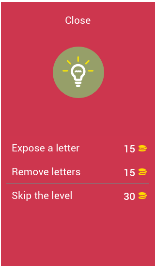 Gunakan petunjuk untuk mendapatkan petunjuk atau untuk melewati level.