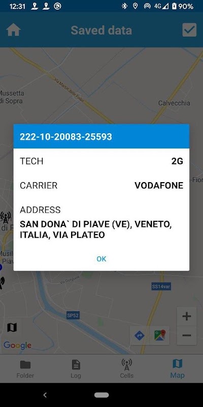 Log posisi GPS dan sel BTS yang digunakan