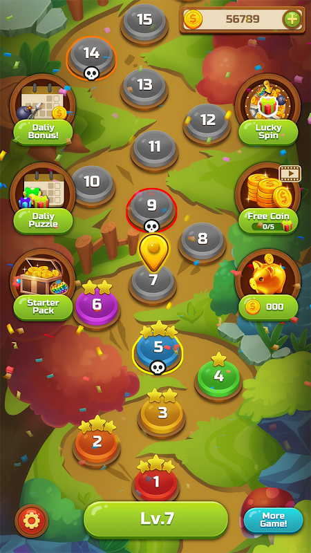 - Game menembak gelembung yang menyenangkan dan adiktif! Bersihkan semua gelembung di layar untuk menaikkan levelnya dan cobalah untuk mendapatkan 3 bintang di setiap level.