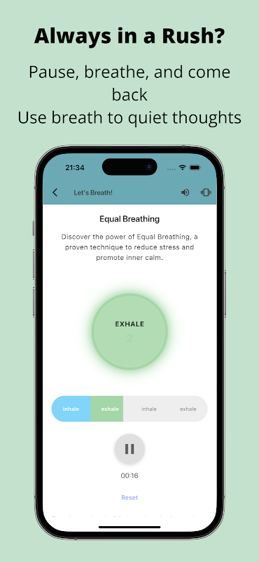 Pernapasan adalah landasan perhatian dan latihan meditasi, dan dengan aplikasi kami, Anda tidak memerlukan aplikasi pernapasan terpisah. Buddha Wisdom menawarkan berbagai latihan pernapasan, termasuk pernapasan kotak, pernapasan setara, dan pernapasan 478, untuk membantu Anda menurunkan stres, meningkatkan ketenangan, dan meningkatkan kesejahteraan Anda secara keseluruhan. Pernapasan adalah alat sederhana namun ampuh yang dapat memberikan rasa tenang dan menurunkan tekanan darah secara instan, menjadikannya alat yang harus dimiliki dalam perangkat mindfulness Anda.
