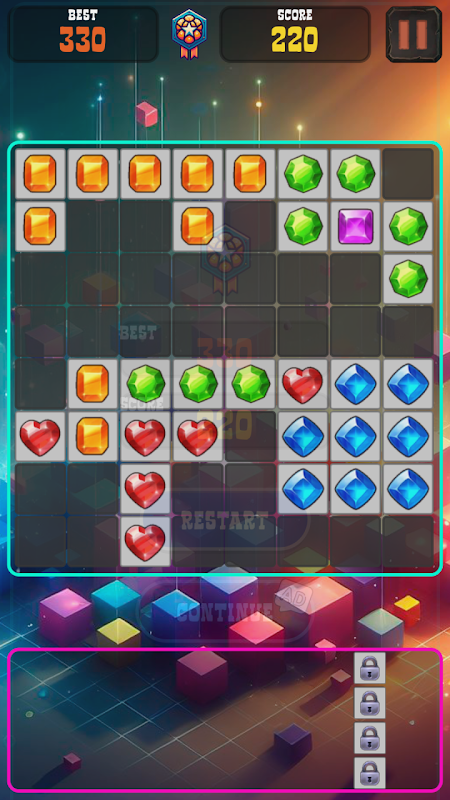 Uji keterampilan Anda dalam tantangan teka-teki balok yang akan membuat Anda tetap waspada. Dengan setiap gerakan, Anda harus berpikir secara strategis untuk menempatkan balok dan garis yang jelas. Teka-teki logika ini sangat cocok bagi mereka yang gemar berolahraga dan bermain permainan pikiran yang merangsang otak.