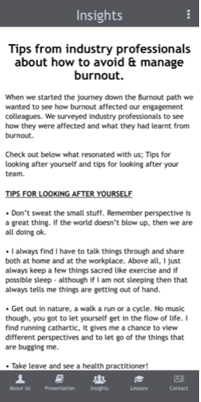 Aplikasi yang mendukung presentasi IAP2 Rebecca Spencer tentang Burnout di industri