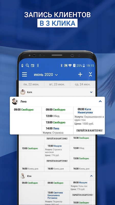 ✅ Untuk master kecantikan, disediakan log registrasi pelanggan yang nyaman, yang menampilkan jadwal beberapa master. Ini akan menghindari penjadwalan yang tumpang tindih dan menghemat waktu. Melacak pelanggan dan pesanan tidak pernah semudah ini!