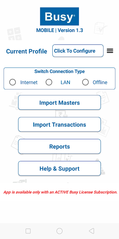 BusyApp is an android based mobile app which can be used to access BUSY data from anywhere, anytime.