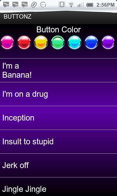 BUTTONZ is the ultimate soundboard! It contains about 200 of your favorite sounds such as "I'm a banana", "Friday", "Spase peepol", "Tiger Blood", "I took an arrow to the knee", "Nyan cat" and more!