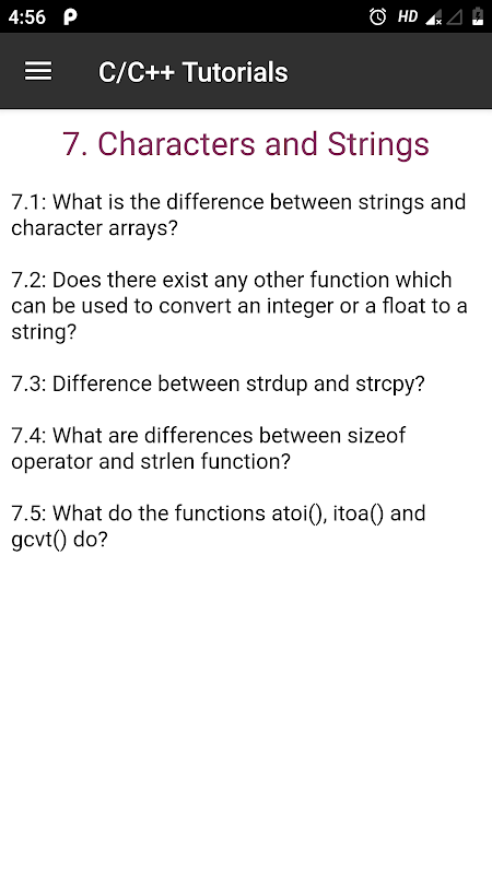 This App also clearly divide C++ Programming Language Bascis , Tutorials , Reference, Online Pages and Articles.