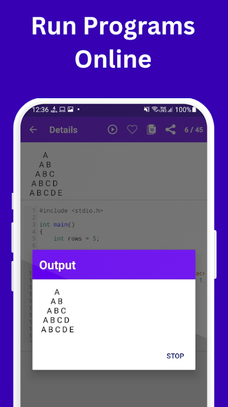 Cuplikan Kode: Aplikasi ini menawarkan banyak cuplikan kode untuk berbagai pola dan program, memungkinkan pengguna menyesuaikan dan bereksperimen dengan kreasi mereka.