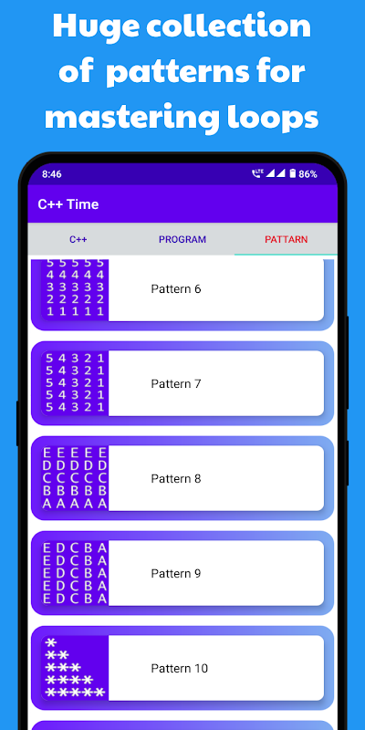 C++ Time is a free android application that contains many java programs and patterns with output.