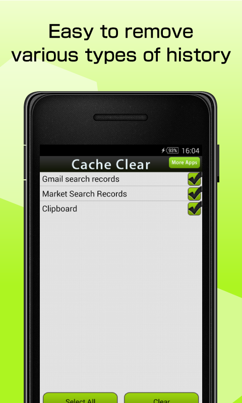 "Cache Hapus" adalah alat kliring cepat yang dapat membantu Anda membersihkan cache dan jejak. Setelah membersihkan data ini, sistem telepon Anda akan secara efektif dioptimalkan akan, sehingga berjalan lebih efisien!
