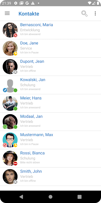> Status telepon langsung untuk kontak internal