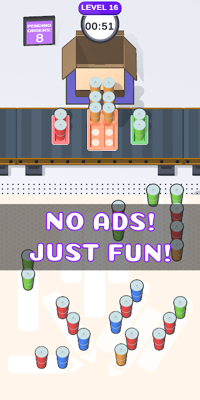 Cocokkan cangkir dengan warna yang sama untuk menyelesaikan pesanan sebelum waktu habis!