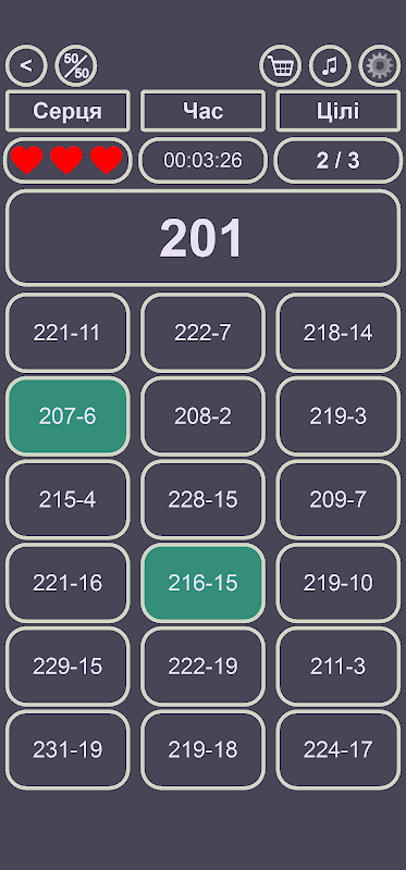 Pada setiap level akan disajikan angka targetnya, yang jumlahnya harus ditentukan dari opsi yang disajikan dalam 12 sel. Jangan menguap, karena semua ini pasti waktu. Anda juga hanya memiliki 3 hak untuk membuat kesalahan.