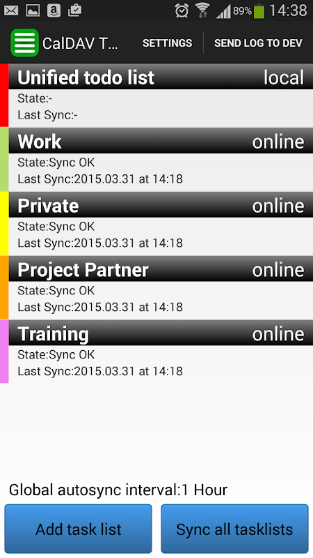 CalDAV Tasksync beta adalah Android App yang dapat digunakan untuk mendapatkan tugas-tugas Anda dan todolists dari CalDAV Server Anda sendiri untuk perangkat Android Anda. App tidak memiliki belum lengkap (misalnya protokol sync tambahan seperti WebDAV murni, FTP, HTTP akan ditambahkan dalam rilis mendatang) dan direncanakan untuk merilisnya sebagai open source setelah mendapat dianggap cukup matang. Hubungi saya di [email protected] jika Anda memiliki ide atau masalah.