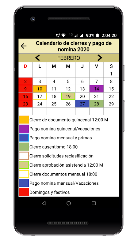 Kalender Penambangan adalah aplikasi yang dikembangkan dengan fungsi eksklusif untuk pekerja Cerrejón, ini menunjukkan di layar utamanya grup yang bekerja, grup yang akan bekerja keesokan harinya dan tanggal pembayaran bulan ini, selain itu berisi menu dengan banyak pilihan yang sangat berguna bagi para pekerja.