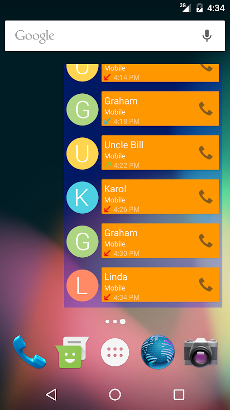 All your calls in one beautiful widget. Provides quick contact information as well as quick callback.