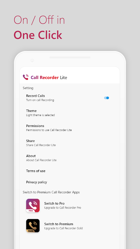 Dengan pengalaman gratis dan fitur Perekaman Audio HQ yang jernih, aplikasi perekam panggilan ini secara otomatis menyimpan rekaman percakapan penting Anda, semuanya di satu tempat. Dengan daya tahan baterai 30% lebih lama daripada aplikasi perekaman panggilan lainnya dengan versi premium bebas iklan. Semua catatan panggilan Anda disimpan di telepon Anda. Kami TIDAK mengumpulkan data di server kami