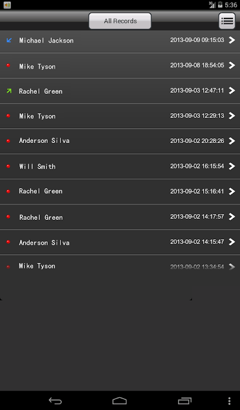 2. Atur rekaman panggilan Anda. Anda dapat melihat seluruh panggilan dengan berbagai pilihan seperti daftar berdasarkan waktu, grup berdasarkan nama atau grup berdasarkan tanggal.