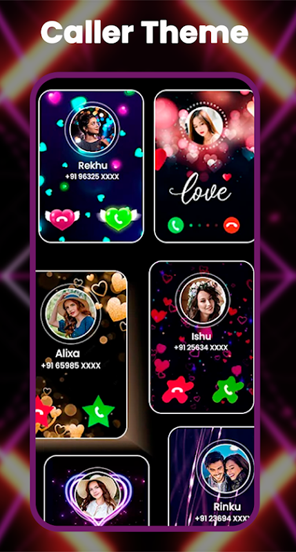 Banyak tema layar panggilan ditampilkan dalam satu Aplikasi, untuk menyiapkan layar flash unik Anda.