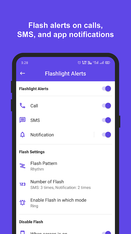 Mengumumkan pesan panggilan, SMS, dan WhatsApp dan beri tahu dengan peringatan senter.
