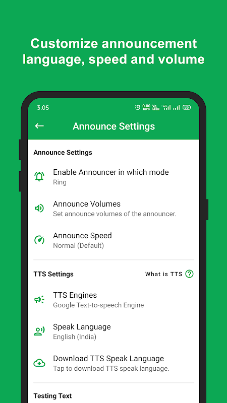 Pemanggil Nama Penyiar adalah aplikasi penyiar yang cepat, intuitif, dan dapat disesuaikan. Ini mengumumkan panggilan, SMS, dan pesan WhatsApp. Ini memiliki fungsi peringatan senter yang memberi tahu Anda melalui flash ketika Anda menerima panggilan telepon, SMS, atau pemberitahuan aplikasi.