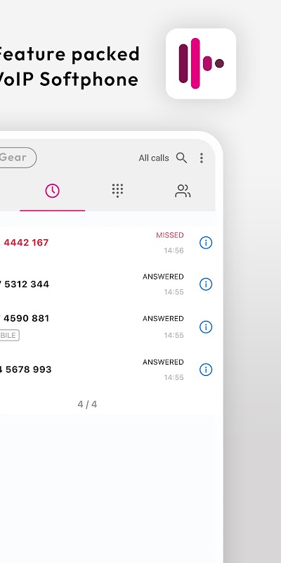 Aplikasi CallGear Android memungkinkan pelanggan CallGear untuk melakukan panggilan telepon pada perangkat seluler mereka menggunakan akun CallGear mereka.