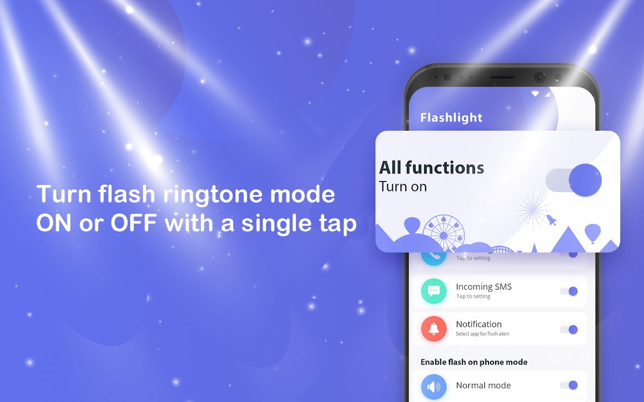 ♥ Turn all flashlight alerts, flashlight ringtone, call flash alert ON or OFF with one tap button