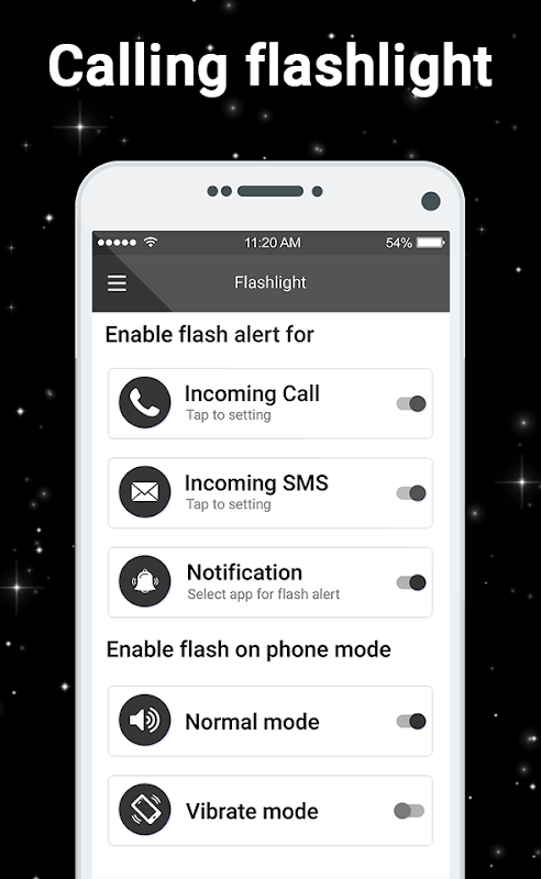 Flash Alerts on Call and SMS allows you to blink the device's flash when you receive phone or SMS text or app notifications. This app will help you prevent missing any important Phone Call, SMS or Notifications. Super easy setting interface just one click enable feature and you are ready to go.