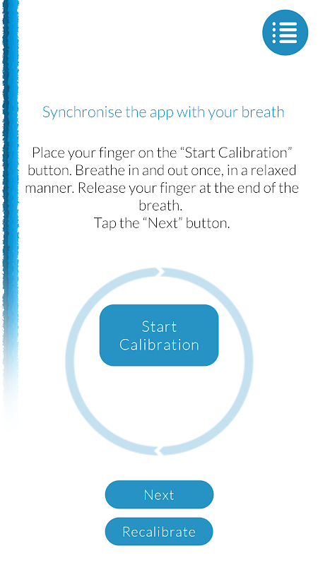Berikut adalah cara kerjanya. Pertama, Anda mengatur aplikasi untuk mencocokkan kecepatan pernapasan alami Anda, dengan satu sentuhan. Anda dapat memilih suara membimbing untuk membantu Anda fokus. Dan Anda dapat kembali mengatur aplikasi untuk mengikuti tingkat Anda bernapas setiap saat. Tidak ada teknis, tidak ada yang mewah.