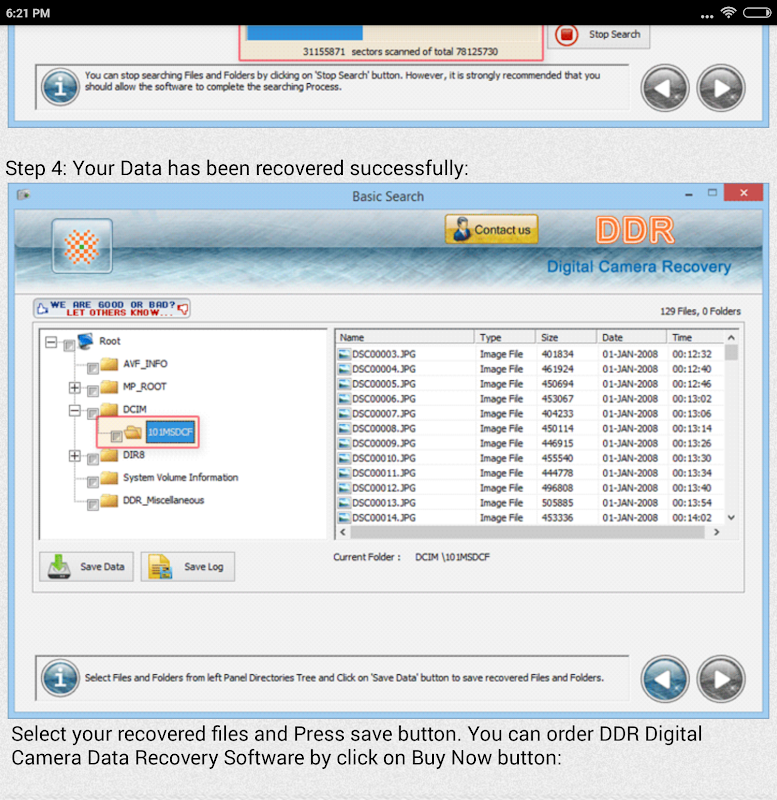 Cam Photo Video Recovery Help is a Free App that guides you to restore your lost pictures or erased Files Photos Videos Raw Images and other data deleted from Digital Camera Memory card or internal Storage of your Camera using DDR Digital Camera Data Recovery Software.