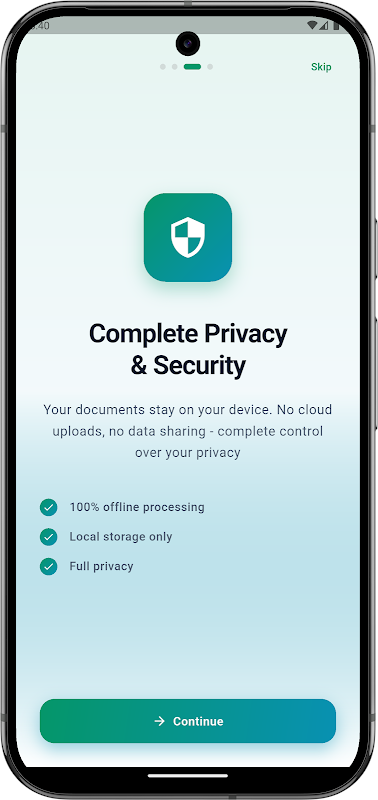Privasi Total: Dokumen Anda tetap pribadi di perangkat Anda.