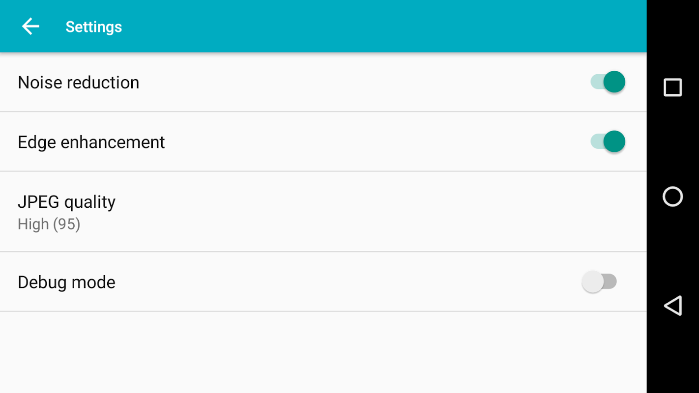 Advanced settings (noise reduction, edge enhancement, JPEG quality)