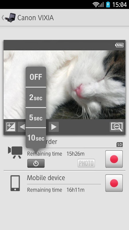 Anda dapat start / stop merekam dan zoom in / out saat melihat gambar hidup camcorder dari kejauhan. gambar hidup dapat disimpan ke perangkat Anda.