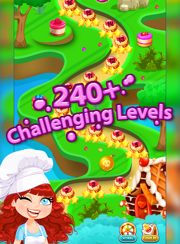 Semua orang bisa menjadi koki yang menyiapkan cupcake lezat dengan krim stroberi atau kue cokelat atau kue lezat dengan selai lezat yang telah diberi aroma dengan jus di game mencocokkan permen ini. Yang harus Anda lakukan untuk menjadi pahlawan koki adalah meletuskan permen dengan mencocokkan pemen yang berwarna sama dan mengumpulkan bahan-bahannya seperti jus, cokelat, krim, stroberi, selai untuk makanan pencuci mulut.
