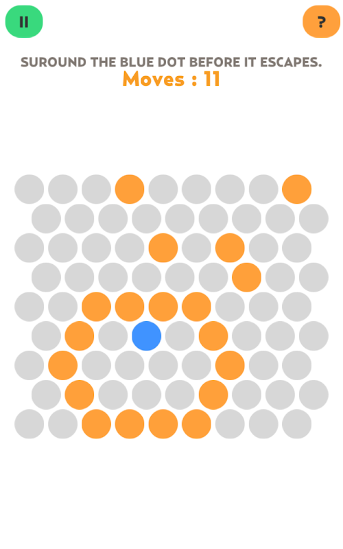 This is a simple game with simple rules. Just trap the the blue dot within the matrix of circles. This is one smart dot though...