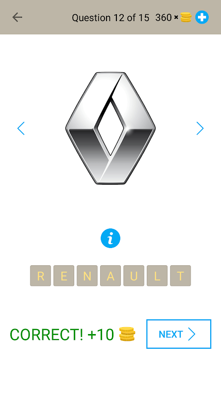 ✔ "Tebak Merek". Di sini Anda menebak merek mobil menggunakan emblemnya.