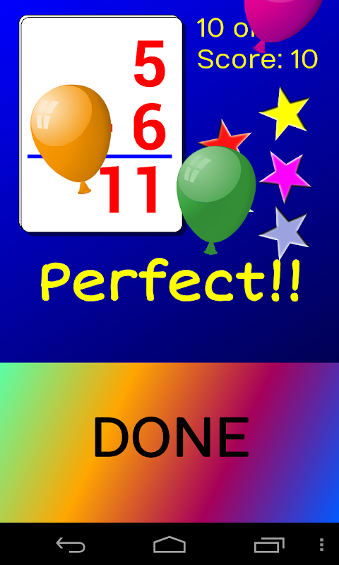 CardDroid Math Flash Cards menggabungkan konsep kartu flash yang telah terbukti dengan warna, suara, dan animasi teknologi saat ini untuk membantu anak-anak belajar di mana saja. Anak-anak mengembangkan kecepatan dan kepercayaan diri sambil bersenang-senang.